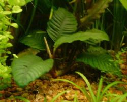 Um plöntuna: Anubias barteri “coffeefolia” er mjög fallegt. lágvaxið afbrigði Anubias barteri. Blöðin bunga svolítið út milli æða og ný blöð eru rauðbrún á lit. Litasamsetningin og lögun blaðanna gera plöntuna eftirsóknarverða, bæði í smáum búrum sem stórum. Plantan blómstrar oft undir vatni en myndar ekki fræ þar. Anubias plöntur vaxa svo hægt að þær virðast ekki átta sig á því að þær séu í kafi. Plöntuætur láta þessa jurt í friði.