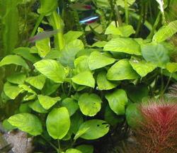 Um plöntuna: Anubias barteri var. nana er smávaxin, aðlaðandi planta sem dafnar við alla aðstæður. Hún vex hægt og blöðin endast í nokkur ár. Fyrir vikið ná hægvaxta þörungar sér á strik. Heppilegast er að festa jurtina við stein eða trjárót með girni uns hún festir rætur. Ef hún er gróðursett í botnmöl þarf að gæta þess að hylja ekki jarðströngulinn því að annars er hætta á að hann rotni. Plantan blómstrar oft í vatni og plöntuætur láta hana í friði.