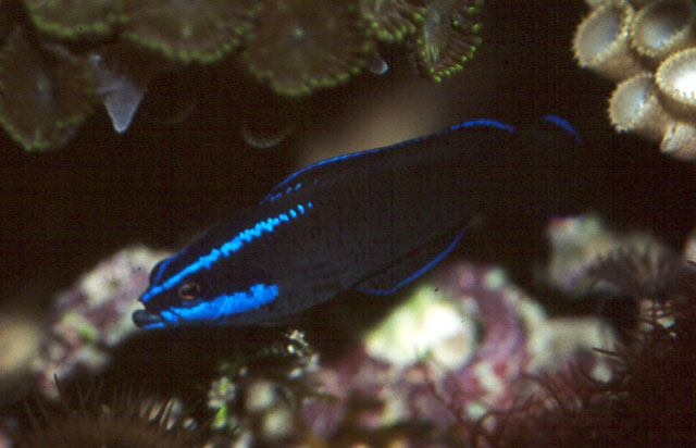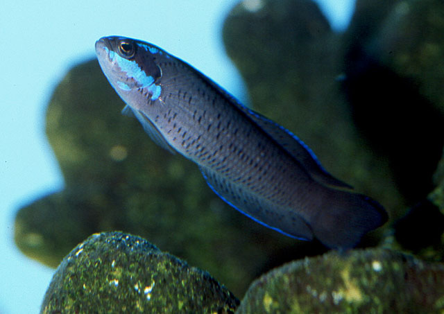 Um fiskinn: Litfagur og vinsæll búrafiskur. Hann er dökkleitur með skærbláum doppum og rákum. Hann er í hópi dottybackfiska en getur átt til að angra rólyndari búrfélaga, einkum ef lítið er um pláss. Yfirleitt mikið á ferðinni og sýnilegur, þolir sjúkdóma vel og étur óværu á borð við bursta- orma. Þarf gott búr með nóg af felustöðum. Er reef-safe en getur étið smærri skrautrækjur. Getur fjölgað sér í búri.
