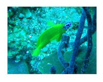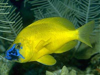 Um fiskinn: Harðgerður og fallegur heiðgulur fiskur með blátt andlit. Hentar ekki í reef búri þar eð hann getur étið skrautrækjur og smáfiska. Bestur stakur eða tveir í stóru búri (210 l) með mörgum felustöðum. Eldri fiskar eiga erfiðara með að aðlagast en yngri fiskar. Verða þá felugjarnir og neita að nærast. Ágætir byrjendafiskar sem þurfa að vera með rólegum fiskum. Þurfa hreint vatn og góðan straum.