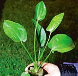 Um plöntuna: Echinodorus cordifolius “Ovalis” er lítil, kúlulaga “sverðplanta” sem hentar vel í smábúr þar eð hún er lágvaxin og breið. Næringarríkt botnlag stuðlar að góðum vexti en ef laufblöðin lýsast er það vísbending um snefilefnaskort í vatninu. Plöntustilkarnir beygja niður að botninum (ólíkt því sem er hjá flestum öðrum sverðplöntum) og mynda eigin græðlinga. Þetta er harðgerð og auðveld jurt, bæði fyrir byrjendur og lengra komna.