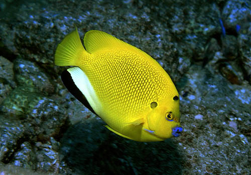 Um fiskinn: Þessi gullfallegi engill er mjög viðkvæmur búrafiskur og þarf mikla natni til að halda lifandi, helst í velþroskuðu rifbúri með vel gróið kóralagrjót. Hann þarf gott búr, hreint vatn og marga felustaði. Frekar hlédrægur í fyrstu og felugjarn en verður fljótt áberandi. Getur verið svolítið yfirgangssamur einkum við skyldar tegundir. Nærist einkum á svömpum og getur því nartað í kóralla og hryggleysingja. Bestur stakur í búri. Mjög erfiður í fóðrun. Ungviði (efsta mynd) farnast betur en eldri fiskar.