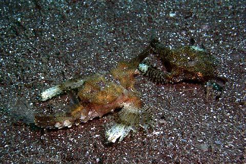 Um fiskinn: Lítill og skrautlegur drekafiskur sem heldur sér við botninn. Hann er vel dulbúinn, neflangur og fellur saman við botninn. Þessi fiskur er skyldur sæhestum og tímgun hans og atferli er að mörgu leyti svipað. Hann skríður eftir botninum eins og skordýr. Þarf gott búr með mörgum felustöðum, hreint vatn og gott vatnsstreymi.
