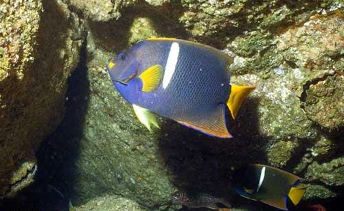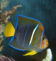 Um fiskinn: Harðger og dýr engill (sjá neðstu mynd) sem getur verið býsna uppivöðslusamur. Getur verið með öðrum fiskum í rúmgóðu búri ef hann er settur síðastur í það. Hentar með td. íkornafiskum, grouperum, glefsum, damselum, haukafiskum, töngum, álum og gikkfiskum. Geta átt það til að bíta í ránfiska eins og ljónafiska. Ungviðið er töluvert öðruvísi útlítandi (efstu myndir) og hreinsar sníkjudýr af öðrum fiskum. Ekki reef-safe en nokkuð auðveldur. Nartar í kóralla og hryggleysingja og er svampaæta.