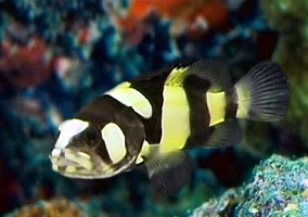 Fóður: Kjötmeti. Vítamínbætt artemía/mýsis til að halda litnum, rækjur, skelfiskur, lifandi bráð. Fóðra 2-4 sinnum á viku.