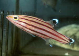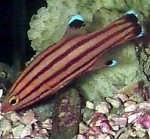 Um fiskinn: Mjög litfagur en sjaldséður fiskur sem hentar vel í kórallabúri. Hann er torveiddur í náttúrunni og verðið á honum því hátt. Hann er mjög harðgerður og bestur stakur. Tveir fiskar geta þó verið í mjög stóru búri en geta barist innbyrðis. Þarf að hafa nóg af felustöðum og góðan straum. Frekar hlédrægur og felur sig í hellum og gjótum. Reef-safe en getur étið litlar skrautrækjur. Þarf góð vatnsgæði og ætti að hafa með rólyndum fiskum. Hefur fjölgað sér í búri. Yfirleitt friðsamur en getur agnúast út i aðra hellafiska.