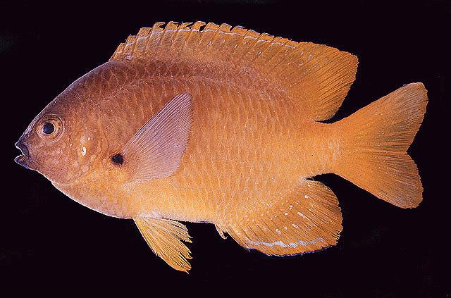 Um fiskinn: Gulleituri damsel með svartar varir. Hann er dæmigerður damselfiskur, harðgerður, yfirgangssamur við rólyndari fiska og skylda, en góður búrfiskur. Þarf gott búr með nóg af felustöðum. Má hafa í smáhópum í miðlungsstóru búri með nóg af felustöðum til að finna par. Annars bestur einn á búr. Par má hafa í minna búri. Er reef-safe og nartar í þráðþörung.